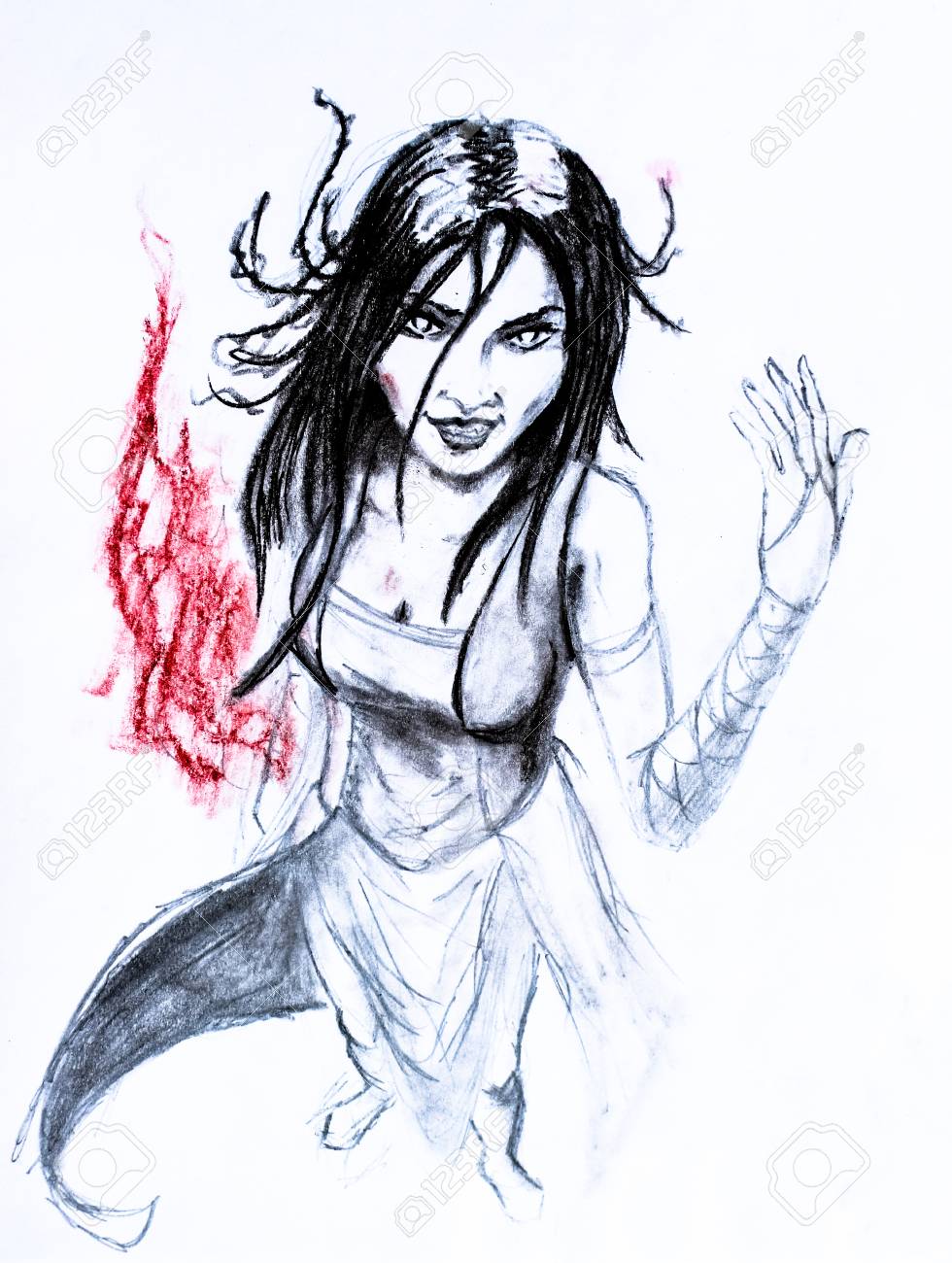 Brunette Woman Witch In Dress Pencil Drawing The Fire Of Passion Stock Photo Picture And Royalty Free Image Image 114078306 - 2048 x 1427 jpeg 1996 kb.