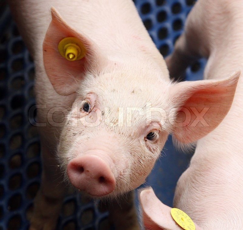 Cute Piglet Looking Into The Camera Stock Image Colourbox - Cute funny smiling happy farm animals set flat cartoon character illustration icon desgin isolated on white background pets farm anumals and pig cow chicken duck horse bunny goat.