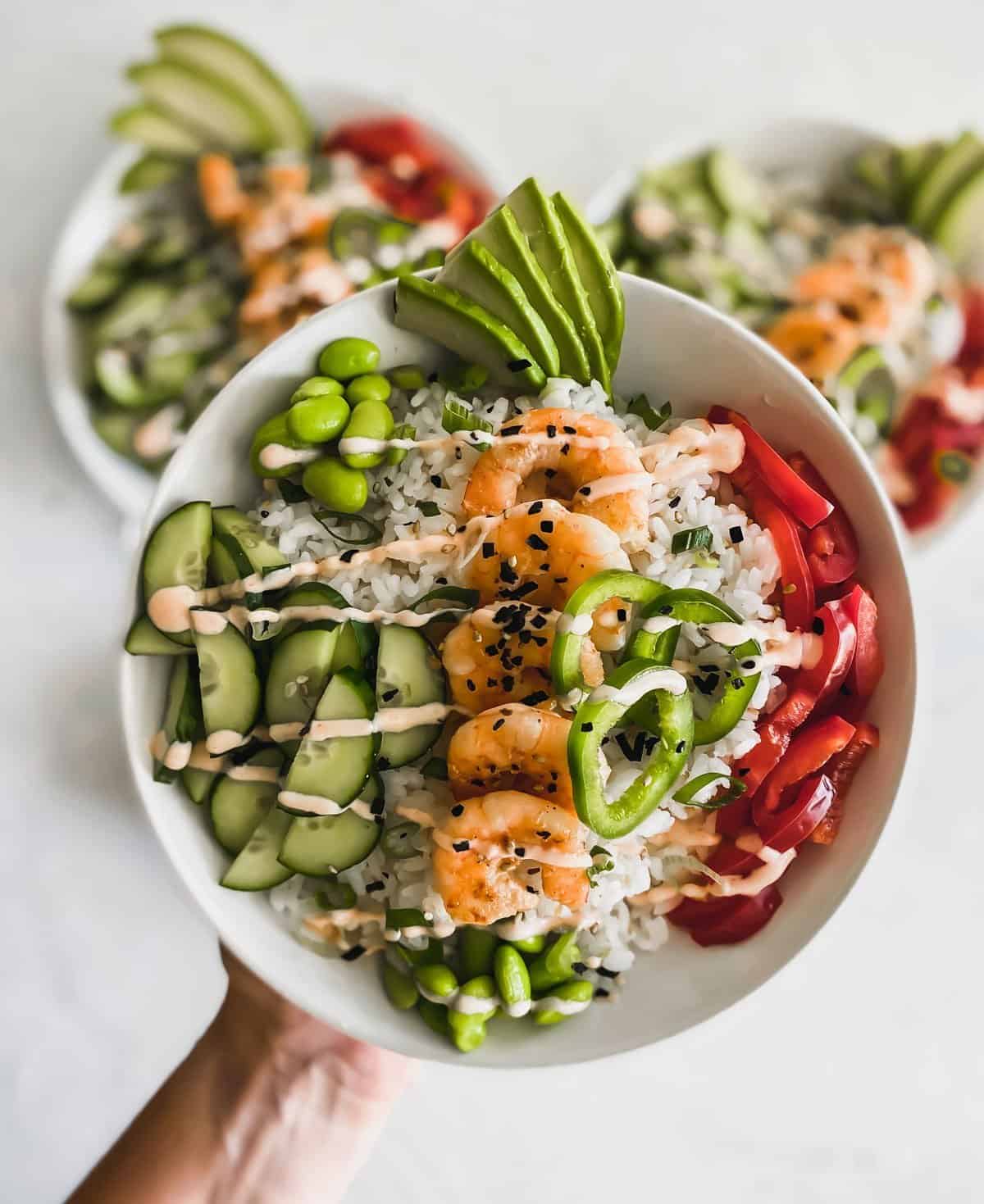 Honey And Garlic Prawn Poke Bowl With Jasmine Rice By Flawless Food - Super simple shrimp poke bowls: